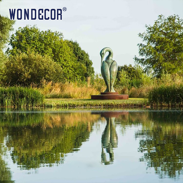Скульптуры водоплавающих птиц часто используются в офисах продаж, дворах, парках и других местах, чтобы передать мирную и динамичную атмосферу посредством движений птиц, таких как расправление крыльев и отдых. Например, скульптура белой цапли стоит у края водоема, и когда ветер дует по поверхности воды, тень птицы колышется, становясь визуальным центром. Интерактивная установка с водными элементами усиливает визуальное воздействие и взаимодействие за счет местного дизайна перфорации художественной резьбы.
