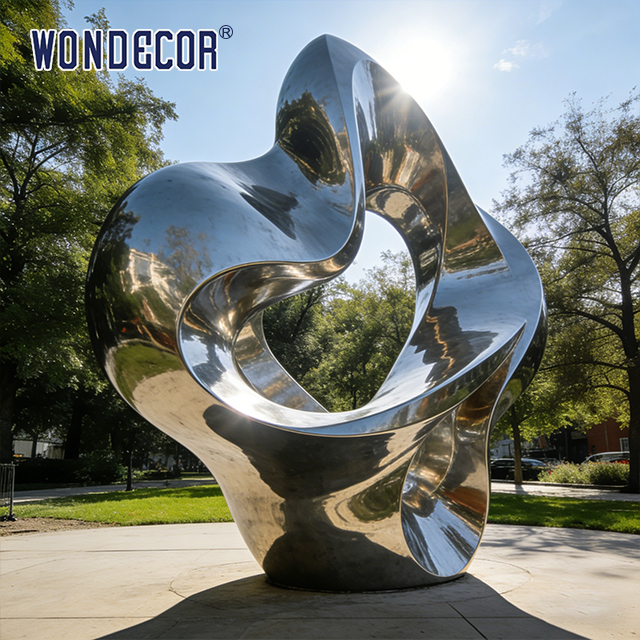 Эта скульптура из зеркальной нержавеющей стали изготовлена с использованием передовых процессов ковки, полировки и отделки, что делает ее идеальной для декоративных целей в садах, парках, на площадях и в различных наружных условиях.